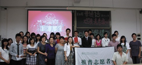 普通话演讲比赛是普通话传播社的特色品牌活动,旨在丰富校园文化生活,全面贯彻落实“服务学习计划”,培养同学们语言表达能力,提高同学们的普通话演讲水平,增强同学们的自信心与自豪感,激发广大学生励志求知、探索创新的情怀,为同学们提供一个展示自我的平台。现在已经举办第五届了,伴随着比赛的结束,我们也期待着下一届更精彩的普通话演讲比赛的到来。